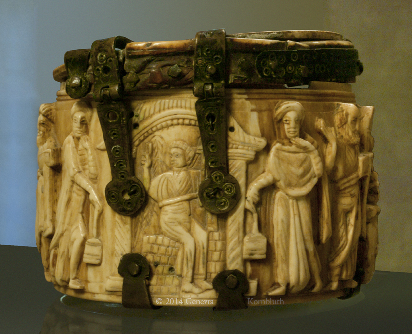 Resurrection, ivory pyxis, 6th c., eastern Mediterranean, VHM, loan from Sion CT. This work has its own page.