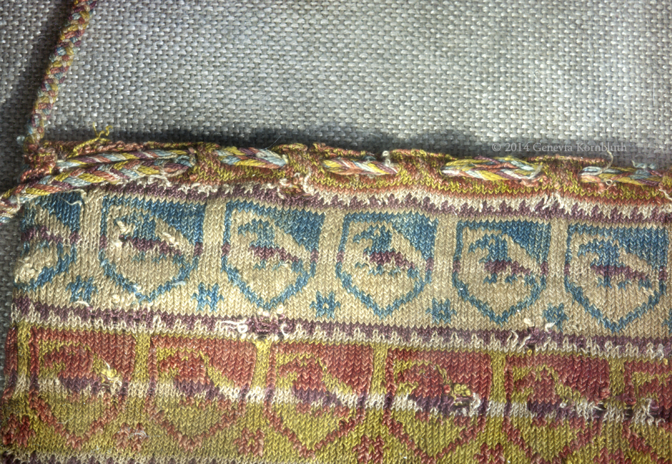 Historical Archive: Sion purse 270 fourteenth century, western or southern Europe knitted silk; length without strap or tassels: 20.5 cm (8 inches) number 270 in Brigitta Schmedding, Mittelalterliche Textilien in Kirchen und Klöstern der Schweiz (Bern, 1978). sacristy, Notre-Dame de Valère, Sion (Sitten), canton of Valais, Switzerland |