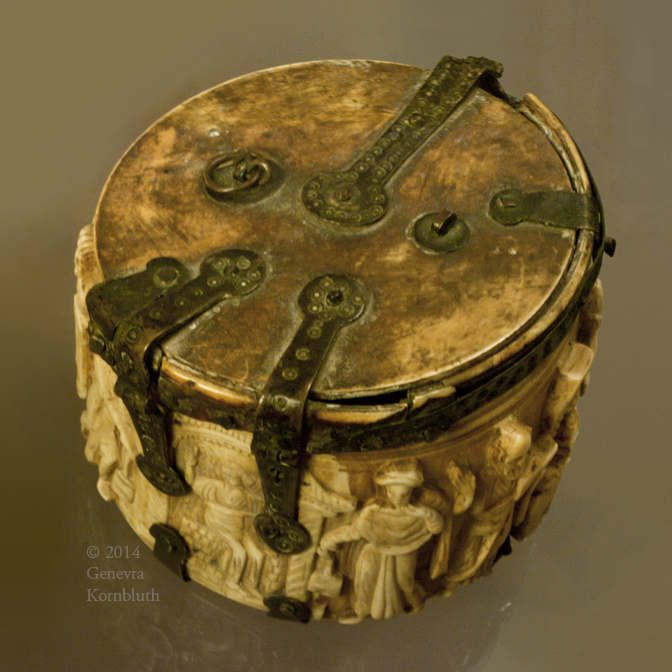 Historical Archive: Sion Resurrection pyxis sixth century, eastern Mediterranean (Syria or Egypt?), with later bronze fittings ivory, height 7.2 cm, with cover 8.4 cm, diameter 11 cm Valais Historical Museum no. MV 152/1, Valère, Sion (Sitten), canton of Valais, Switzerland loan from the canons of Sion cathedral |