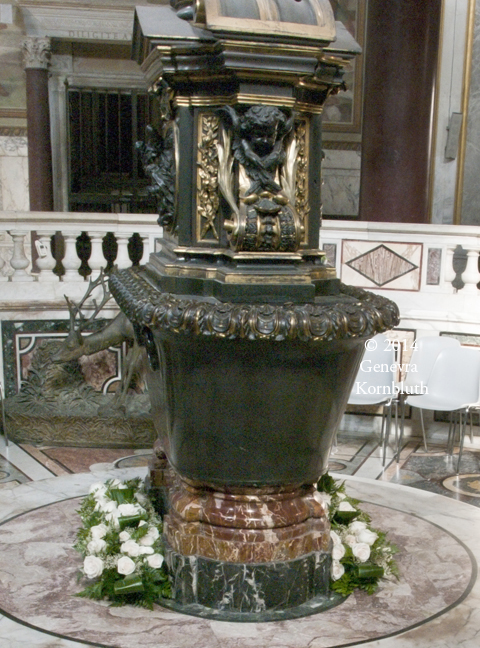 bronze font cover by Ciro Ferri (1634-89), Lateran Baptistery, Rome. The baptistery octagon and narthex have their own interior page.