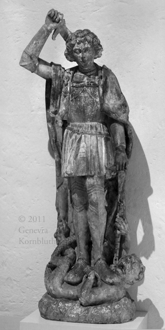 Archangel Michael, limestone, France c.1500, Glencairn Museum loaned to PMA. This object has its own page.