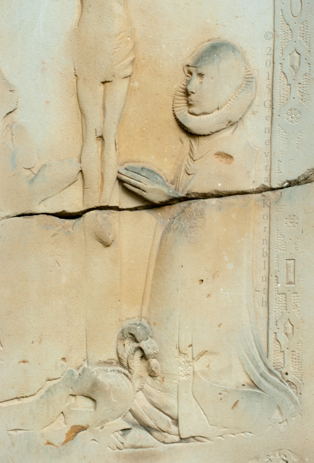 Canon Arnold Freitag (d.1546), sandstone, upper panel, HildMus G25