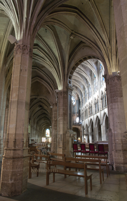 nave elevation from northwest: round pier 1st third of 13th c., compound piers 2nd half 15th c.