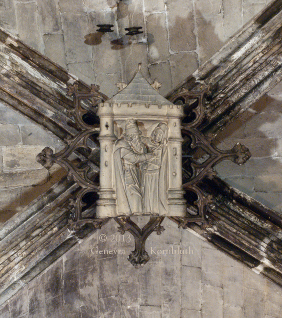 keystone in south aisle, late 15th c.: Joachim and Anna