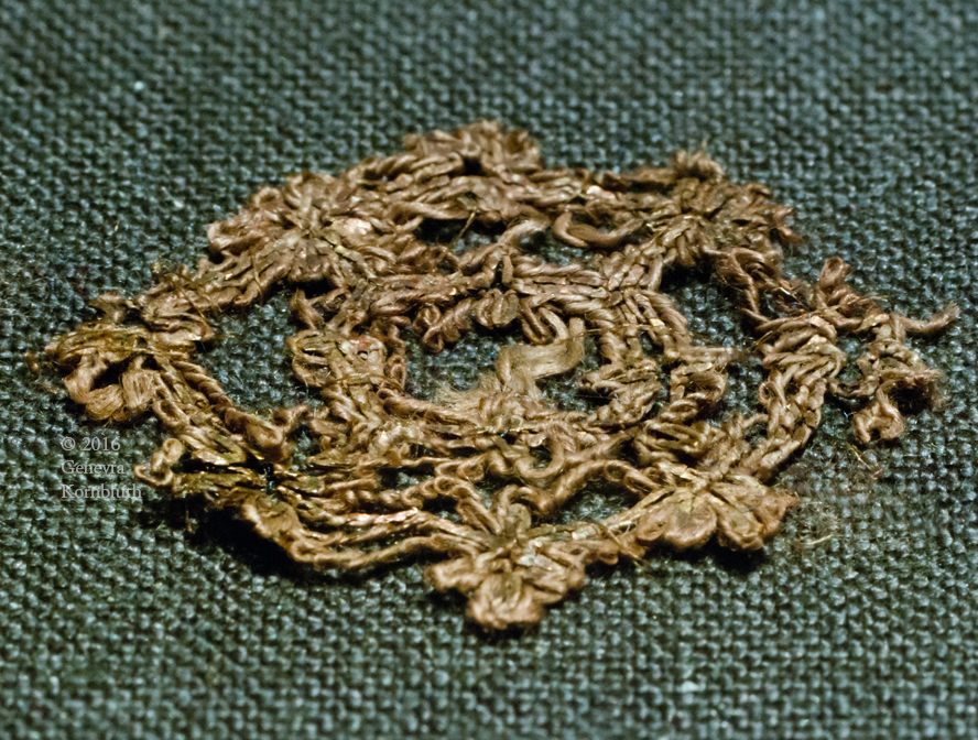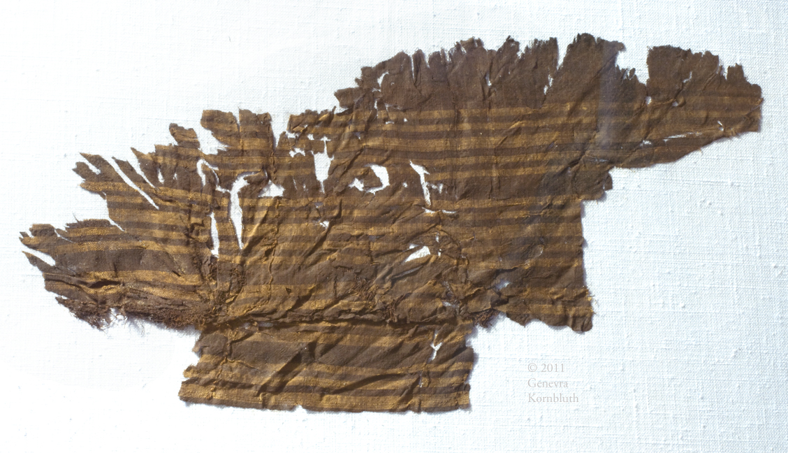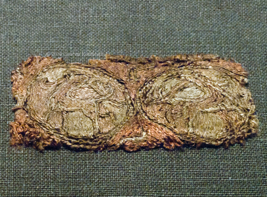gold embroidery on silk core, from Gokstad burial dated 895-903, C10459, OsloVSM, which has its own pages
