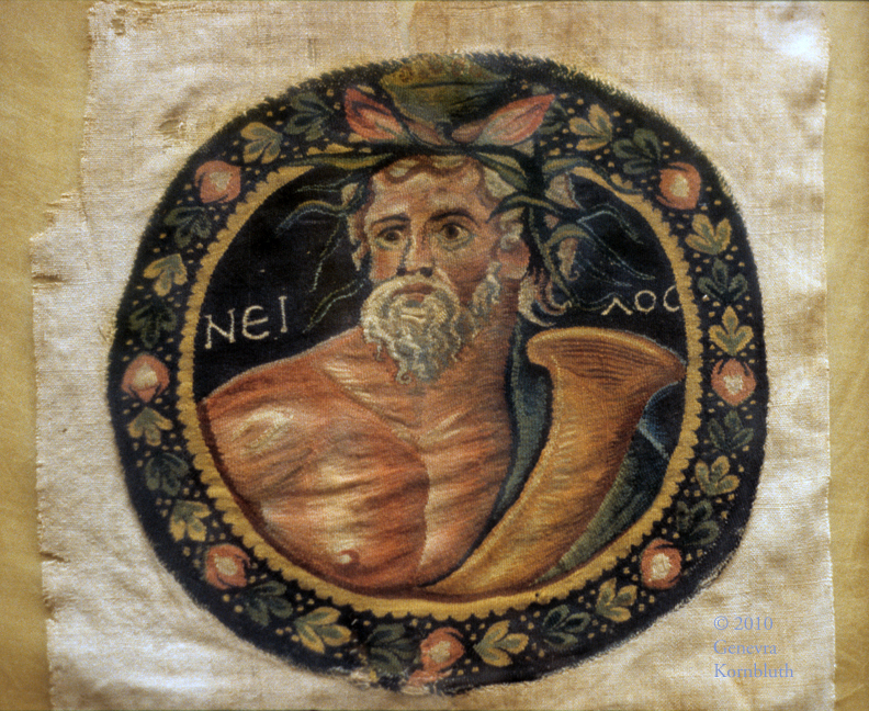 Nile River personification, linen and wool tapestry stitched to linen, 4th c., Pushkin GMII, I 1a no. 5822