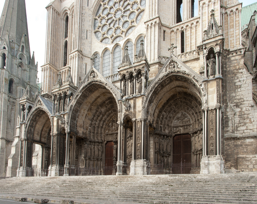 Chartres cathedral, south porch largely complete by 1210. For more views see Chartres.