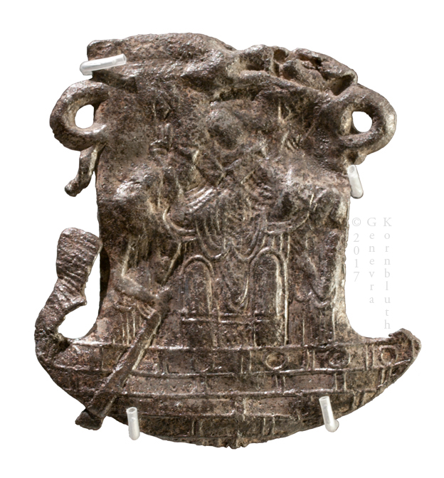 Thomas Becket ampulla shaped as the ship that brought him to England, with enthroned saint blessing, mid/late 13th c., tin alloy, MoL 84.407