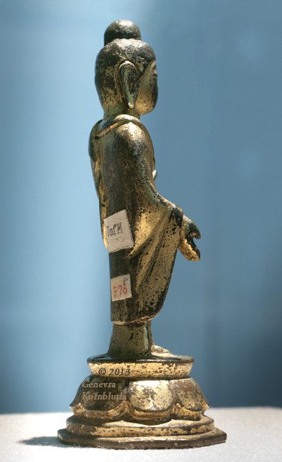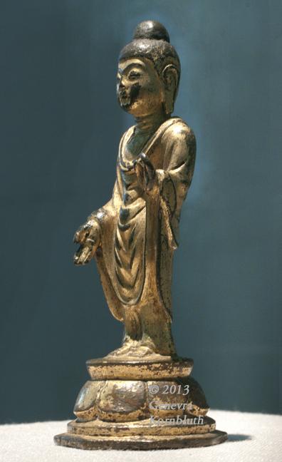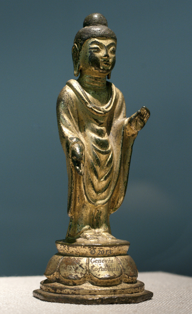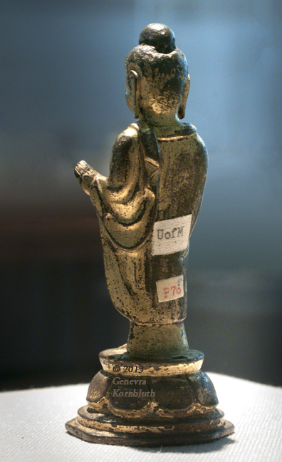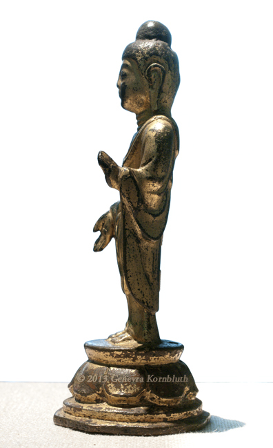 Historical Archive: Standing Buddha in Abhaya-vara mudra late 7th-early 8th c. Korea gilt bronze, 10.8 cm x 4.5 cm x 4.5 cm (4.25 x 1.75 x 1.75 in.) Ann Arbor, University of Michigan Museum of Art 1961/2.80