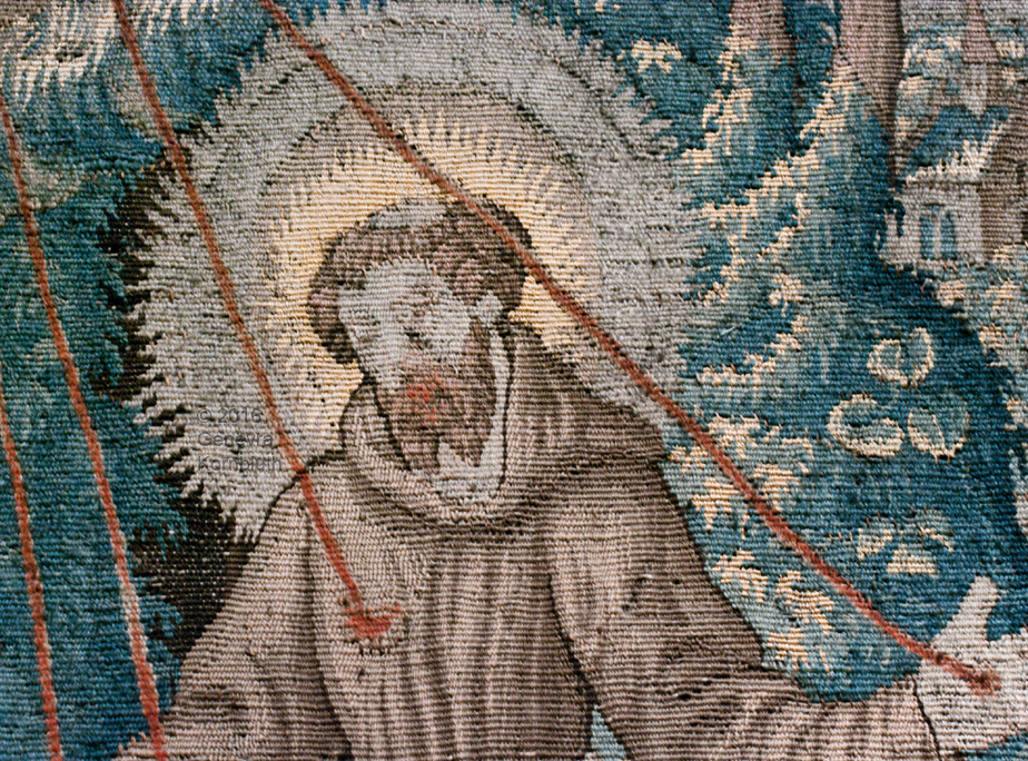 Historical Archive: Stigmatization of St. Francis tapestry Oudenaarde? first half of the 17th century photographed in Utrecht Museum Godshuis Belle, Ypres