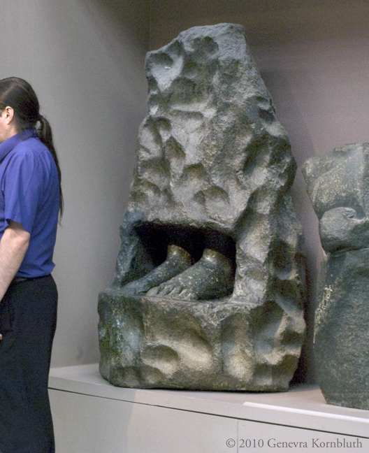 Gudea figure later used to grind grain, basalt, c.2190-2100 BCE, BM 1903.1012.7. For closer view see BM.