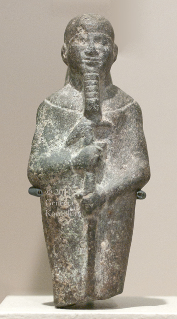 miniature Ptah, stone, 26th dynasty Saite period 685-525 BCE, KM 1971.02.0149. For oblique view see Kelsey.