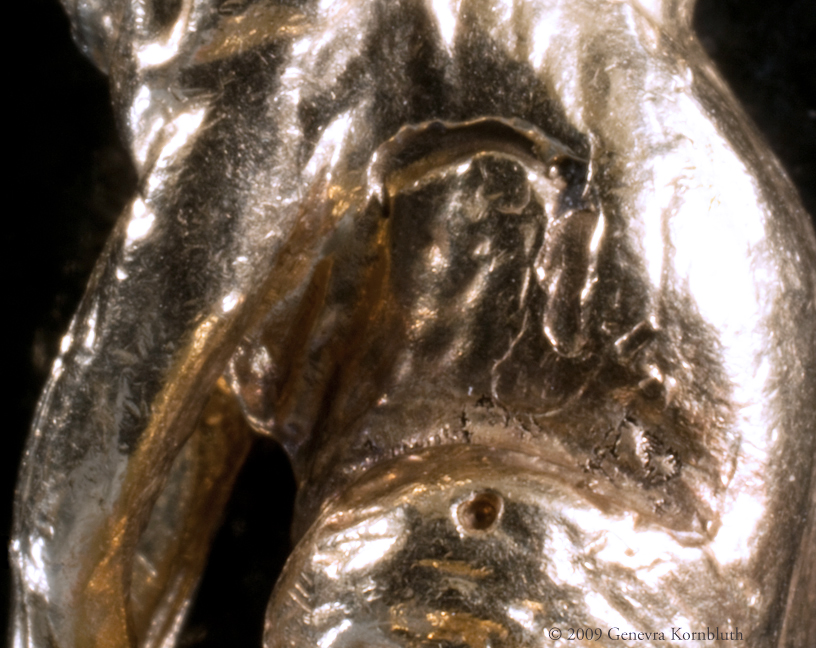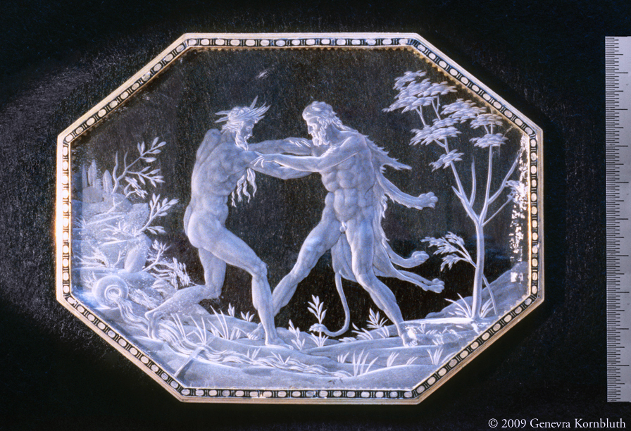 For scholars and publishers: Please examine the clarity of historical objects shown throughout this site. My photographs of objects like the Enger reliquary discussed above make studies of technique convincing. In addition, unusual iconographic and stylistic features are often difficult to see in overall views of small objects. I can make sure that readers will see those important details and therefore respond to arguments concerning them. Here, for example, is a rock crystal intaglio engraved with Hercules and Achelous, set in enameled gold (Annibale Fontana, c.1560-70, Baltimore, Walters Art Museum). My photograph of the head of Achelous documents the head-gear of the river god, his facial features, and the musculature of his upper back and shoulder. I can photograph the objects important to you in similar detail.